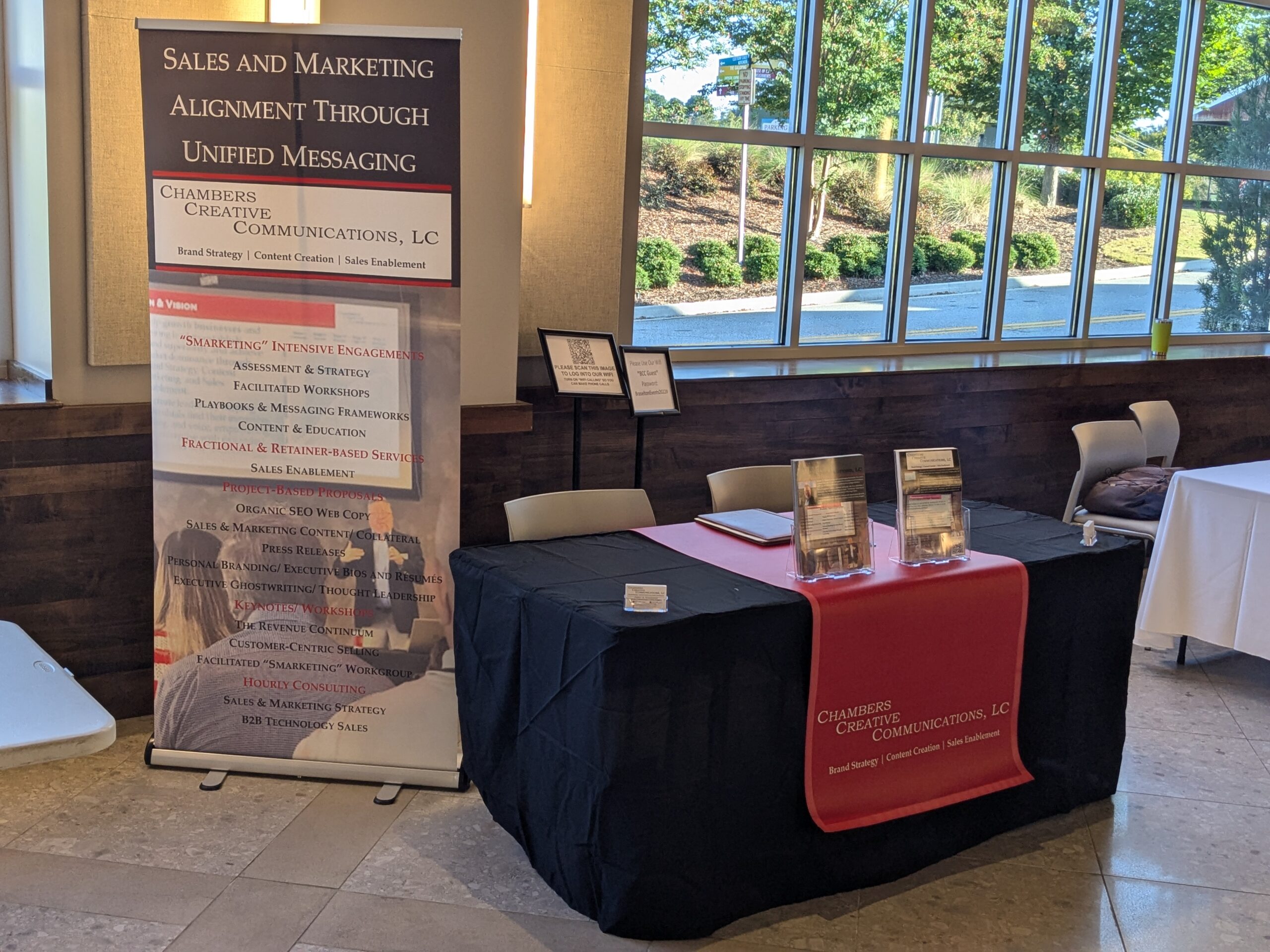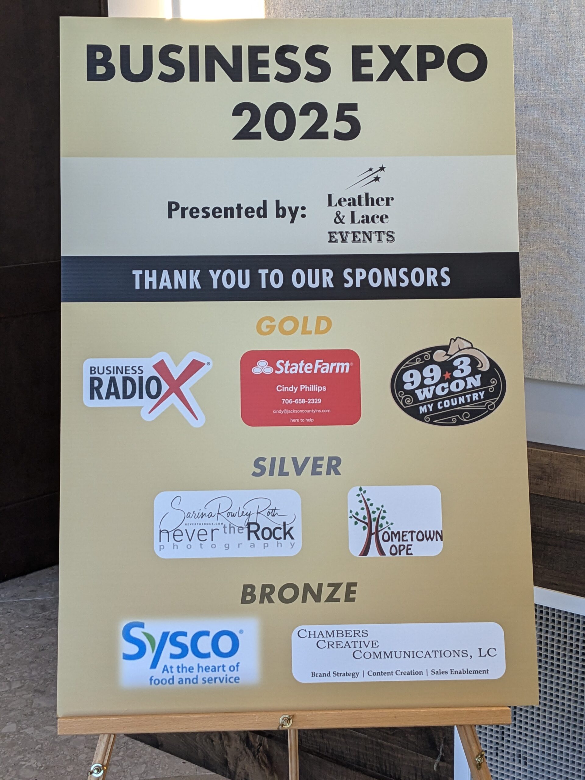 BRASELTON, GA – On September 26th, Chambers Creative Communications, LC appeared at the second annual Business Expo hosted at the Braselton Civic Center by Leather & Lace Events. The Expo played host to some 33 vendors representing businesses large, small, and even solo practitioners. Of these, there were several sponsoring vendors, of which Chambers Creative Communication sponsored at the Broze tier.